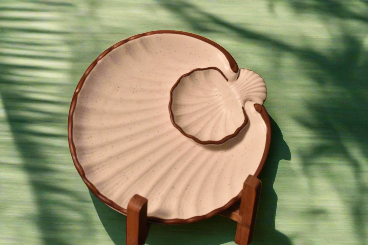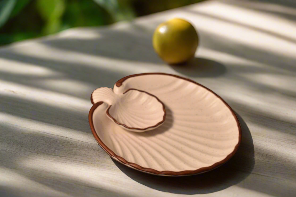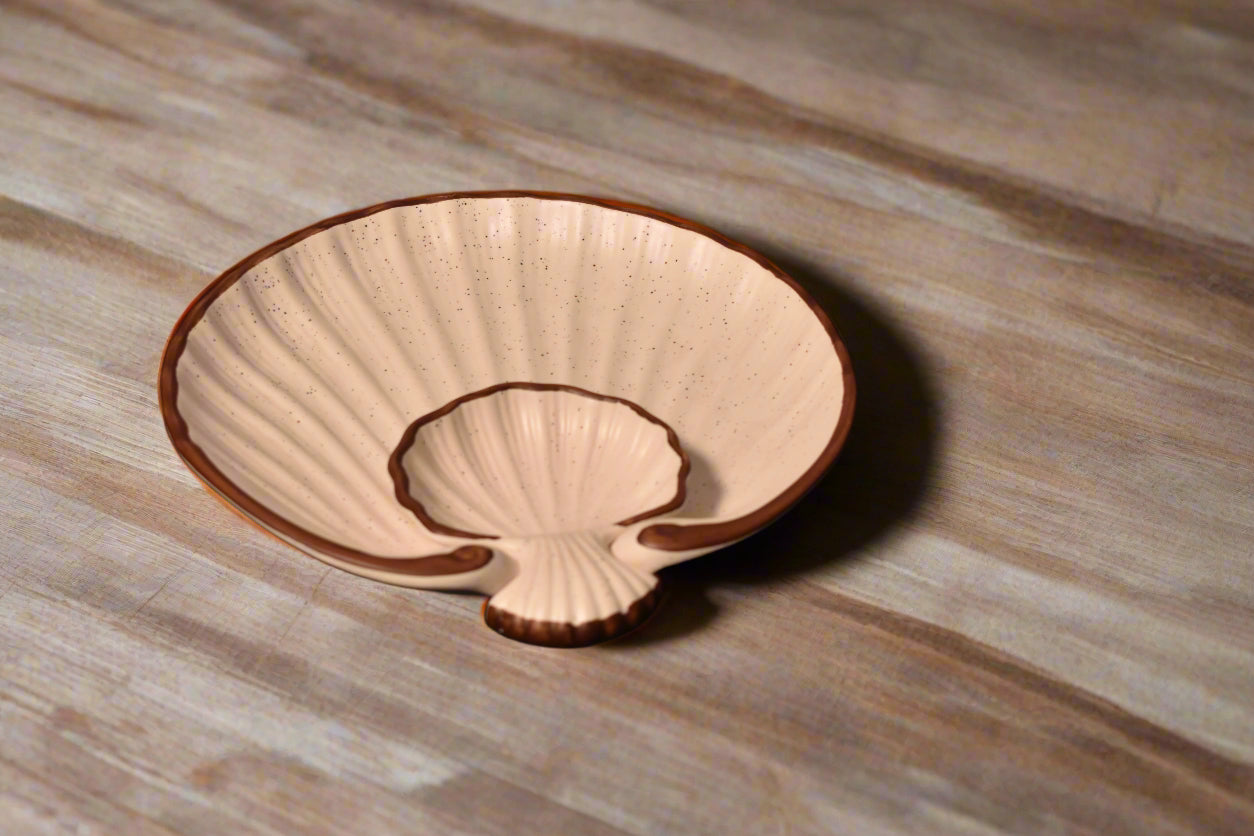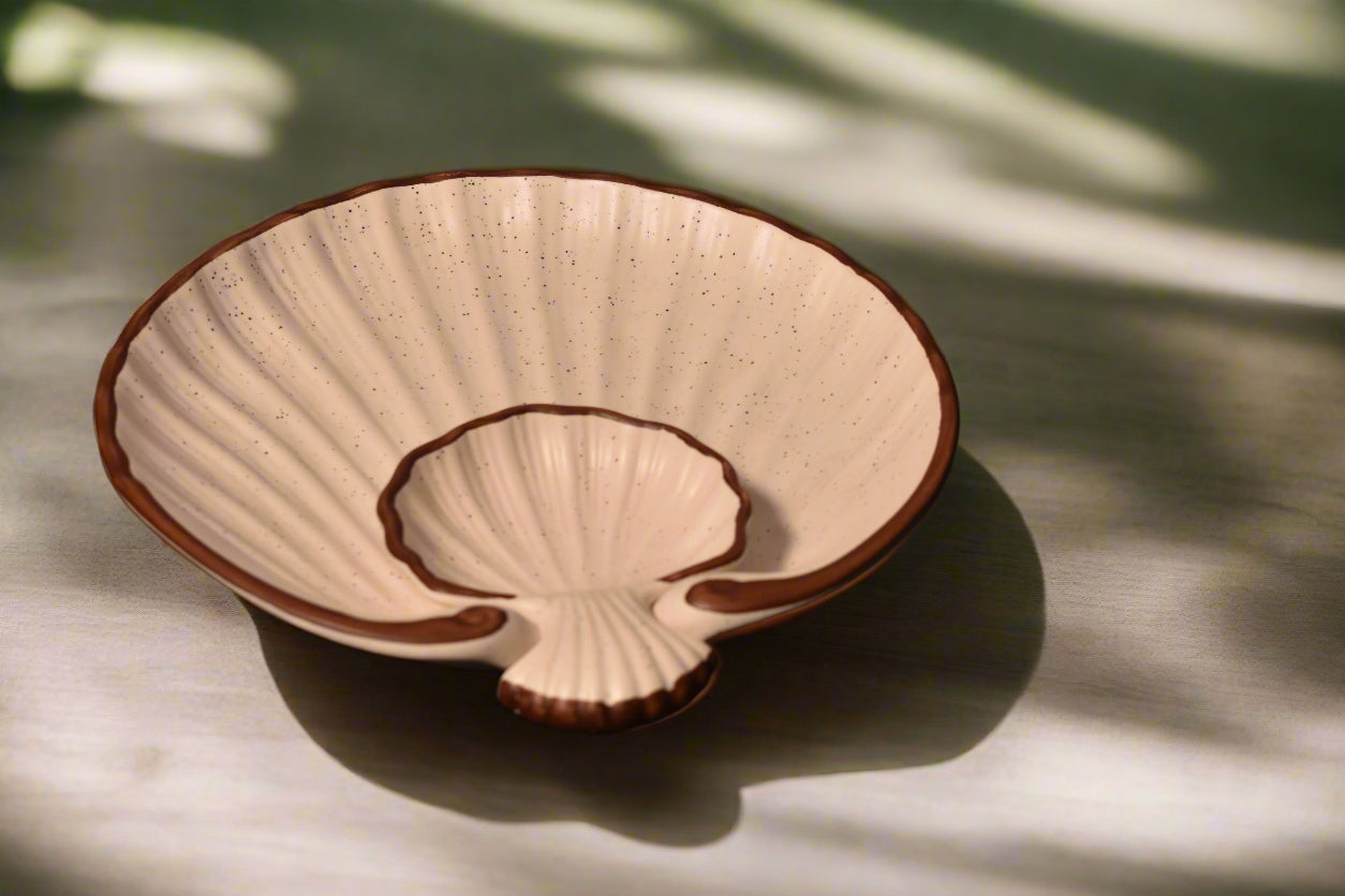 Elevate your dining experience with this exquisite handcrafted ceramic plate, inspired by the beauty of ocean shells. Designed with an organic, flowing pattern in earthy brown and green hues, this plate is perfect for serving appetizers, snacks, or as a statement piece in your tableware collection. The glossy glaze finish enhances its artisanal charm, making it a must-have for lovers of unique and nature-inspired crockery.