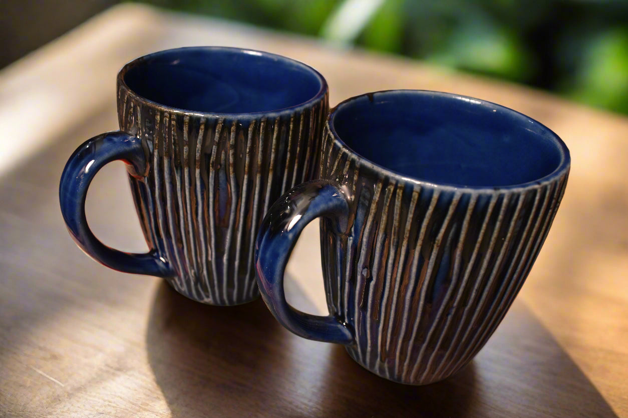 Bring earthy elegance to your everyday moments with our Rustic Ridge Stoneware Coffee Mug. This handcrafted ceramic mug features a natural, ridge-textured exterior in warm brown tones paired with a striking indigo-glazed interior. The blend of raw charm and modern detail makes it perfect for slow sips of coffee, tea, or hot chocolate.
