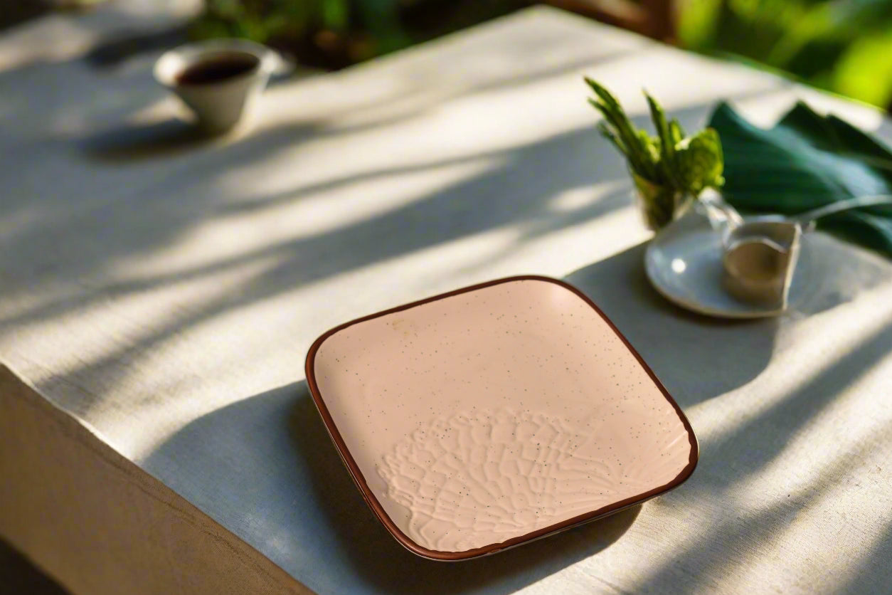 Add a touch of organic sophistication to your dining experience with our Sandstone Textured Beige Ceramic Square Plate.