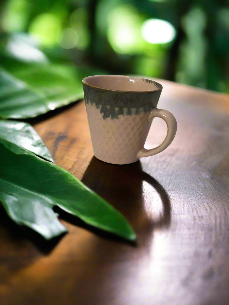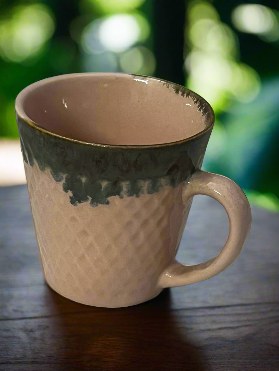 Elevate your sipping experience with our Blush Pink Textured Ceramic Tea Cup, featuring a stunning dark green drip glaze and a soft waffle-like texture. Designed for those who appreciate artistry in everyday essentials.